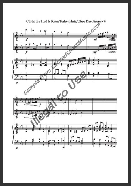 Mixed woodwind duet for Flute and Oboe with piano accompaniment. An energetic arrangement of this well-known Easter hymn by Charles Wesley. Moderately Advanced level of difficulty.