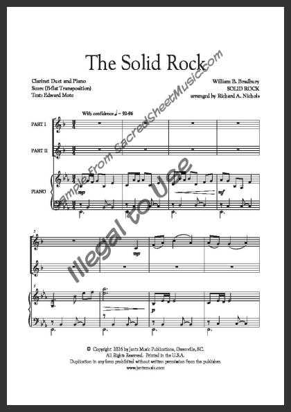 Clarinet duet with piano accompaniment. A bright, uplifting arrangement that reminds us our hope is built on Christ. Moderate level of difficulty.