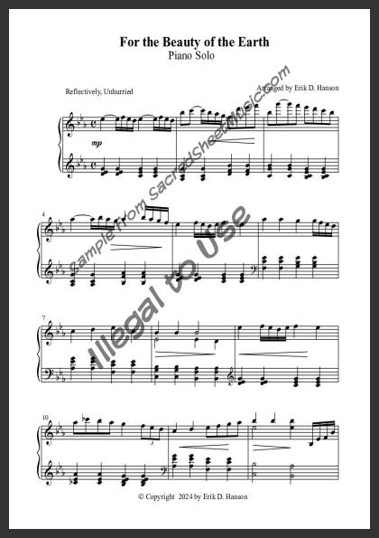 If you like walking outside and experiencing the sounds of God's creation, this arrangement may be for you. This composition's motif displays a flute in the countryside, displaying the beauty and glory of God.