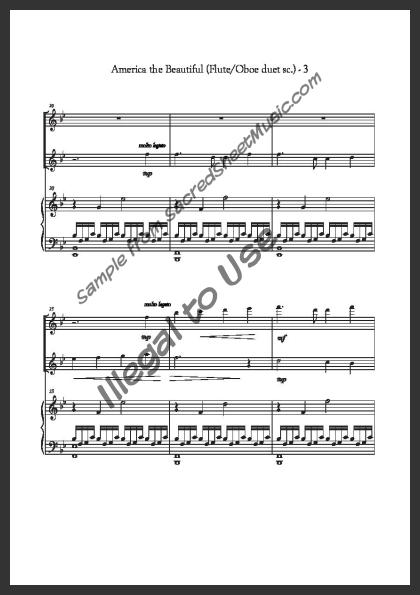 Mixed woodwind duet for Flute and Oboe with piano accompaniment. An energetic, beautiful arrangement by renowned composer Dan Forrest of one of the more popular American patriotic songs. Moderate level of difficulty.