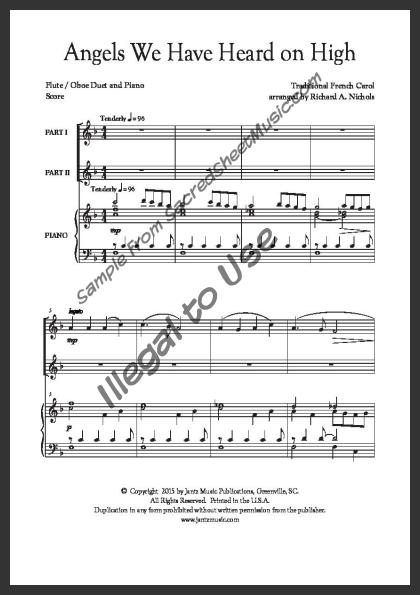 Mixed woodwind duet for Flute and Oboe with piano accompaniment. This well-known Christmas carol comes alive in this wonderful, new setting. Moderately Advanced level of difficulty.