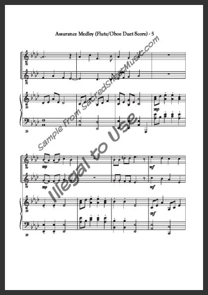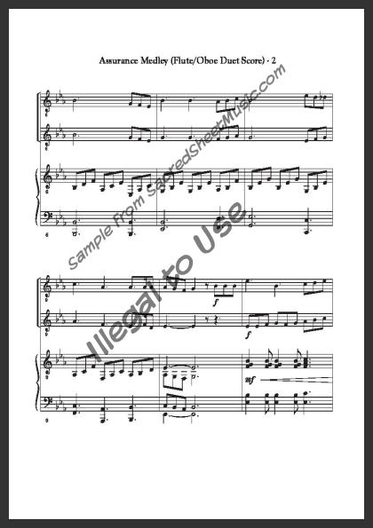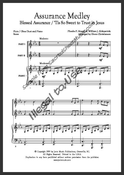 Mixed woodwind duet for Flute and Oboe with piano accompaniment. A medley of ‘Blessed Assurance’ and ‘Tis So Sweet to Trust in Jesus’ combining two songs telling of the trust in our Savior for salvation and the assurance it brings. Moderate level of difficulty.