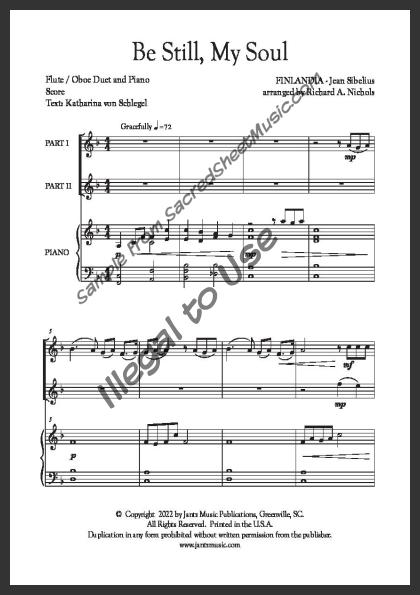 Mixed woodwind duet for Flute and Oboe with piano accompaniment. This old hymn written by composer Jean Sibelius in this new setting reminds us to keep our hope and confidence in God. Moderate level of difficulty.