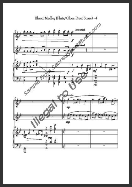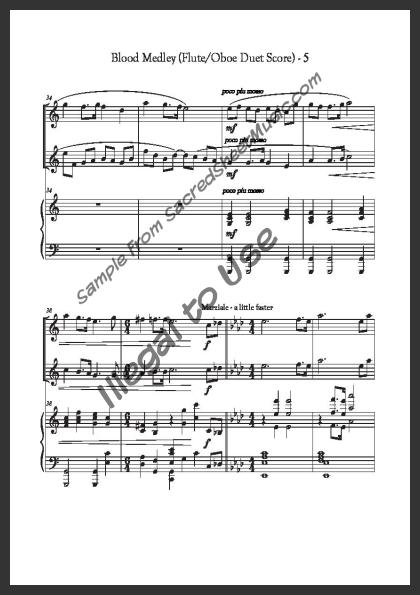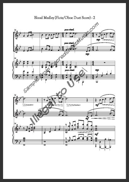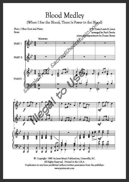 Mixed woodwind duet for Flute and Oboe with piano accompaniment. An energetic, flowing arrangement of two hymns on Christ’s work on the cross – ‘When I See the Blood’ and ‘Power in the Blood.’ Moderately advanced level of difficulty.