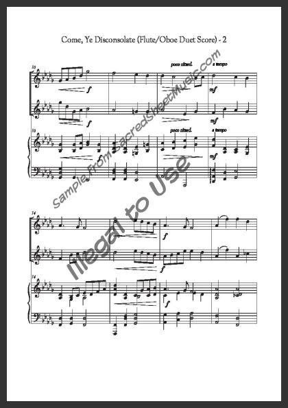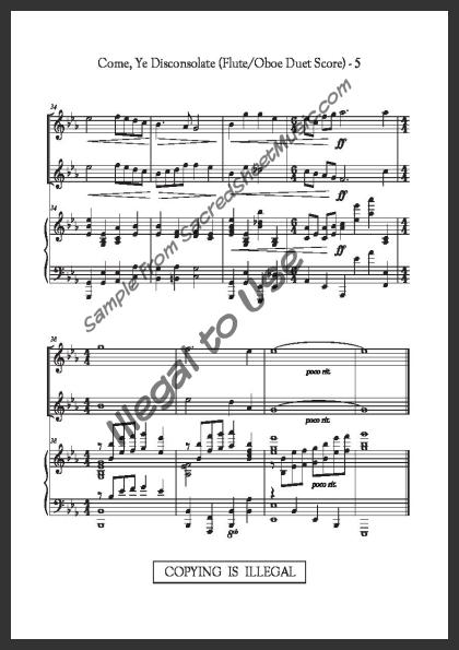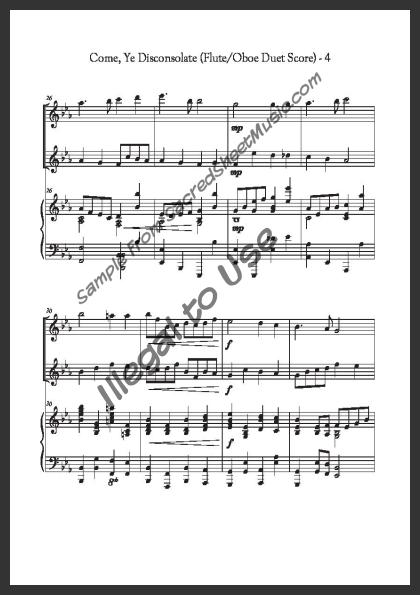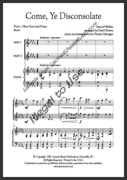 Includes the full score with piano accompaniment and separate duet parts for Flute I and Oboe II.