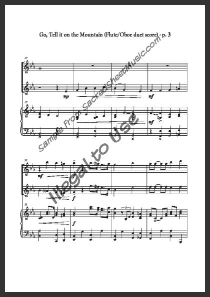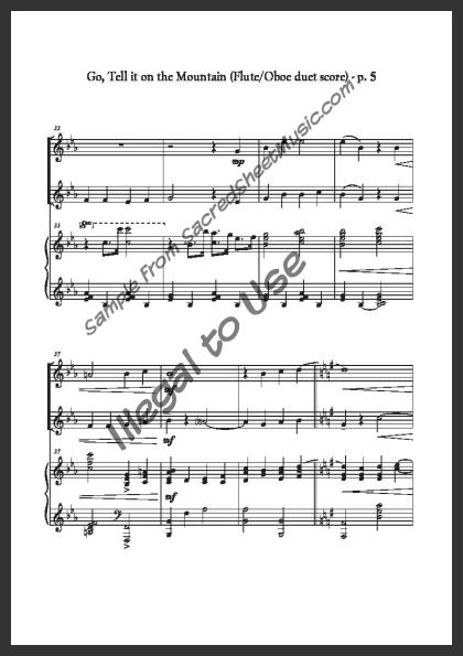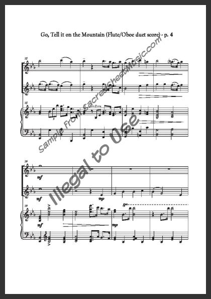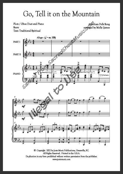 Mixed woodwind duet for Flute and Oboe with piano accompaniment. A spirited, new setting of this Christmas favorite by established arranger Molly Ijames - ‘Go, Tell it on the Mountain that Jesus Christ is born!’ Moderate level of difficulty.