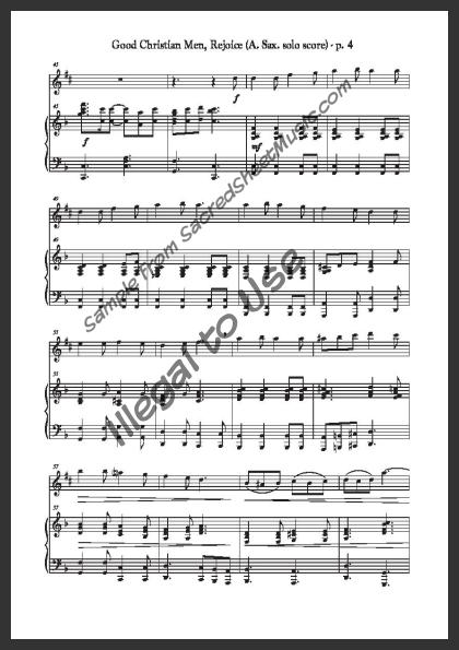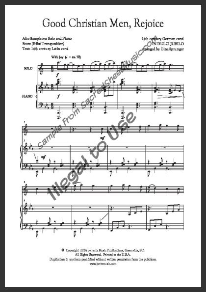 Alto Saxophone solo with piano accompaniment. An uplifting arrangement of this popular Christmas carol declaring ‘Jesus Christ is born today!’ Moderate level of difficulty.