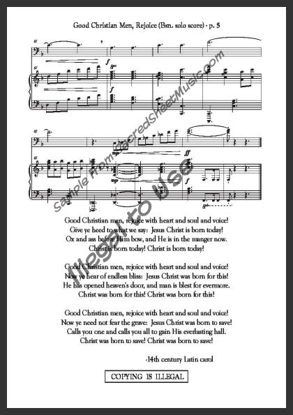 Bassoon solo with piano accompaniment. An uplifting arrangement of this popular Christmas carol declaring ‘Jesus Christ is born today!’ Moderate level of difficulty.