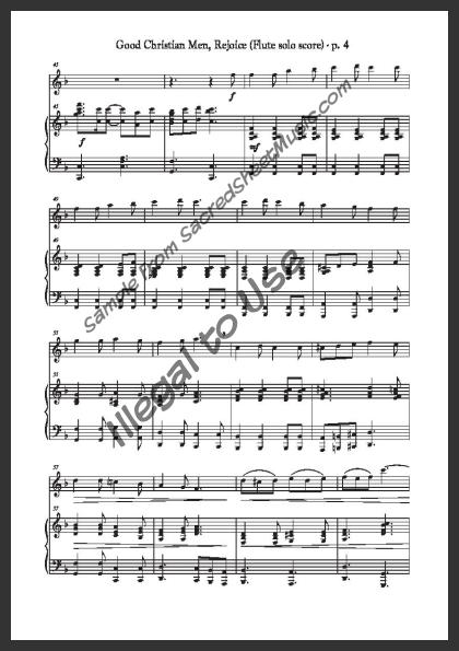 Flute solo with piano accompaniment. An uplifting arrangement of this popular Christmas carol declaring ‘Jesus Christ is born today!’ Moderate level of difficulty.