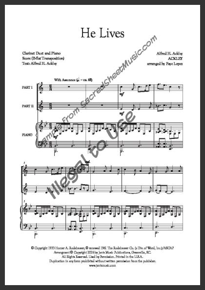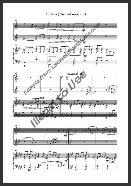Clarinet duet with piano accompaniment A bright, uplifting arrangement that celebrates Christ’s resurrection – ‘I serve a risen Savior.’. Moderately Advanced level of difficulty.