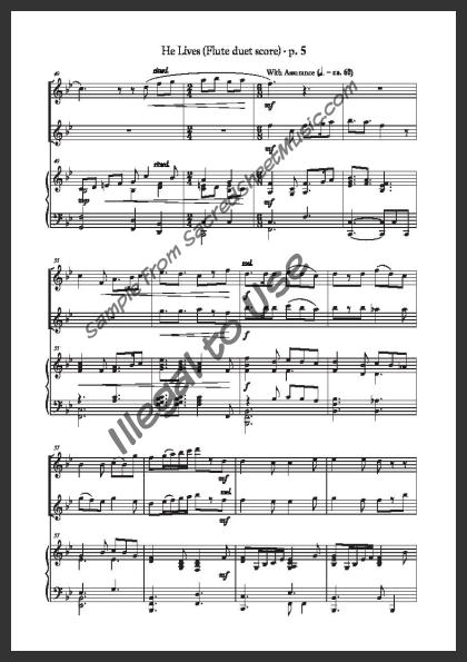 Flute duet with piano accompaniment. A bright, uplifting arrangement that celebrates Christ’s resurrection – ‘I serve a risen Savior.’. Moderately Advanced level of difficulty.