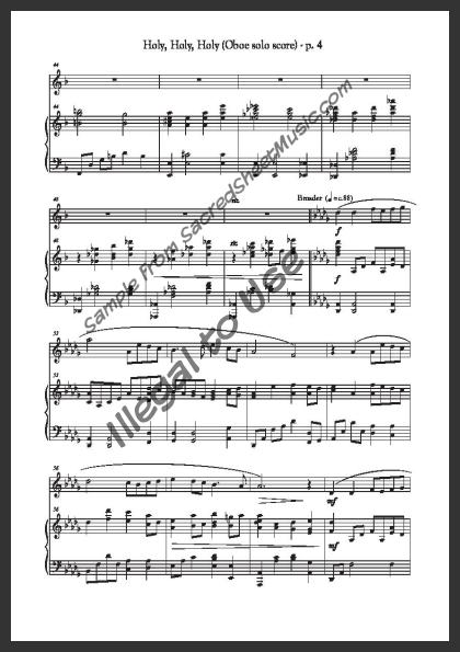 Oboe solo with piano accompaniment. A beautiful, flowing arrangement of this older hymn praising our holy and merciful ‘Lord God Almighty!’ Moderate level of difficulty.