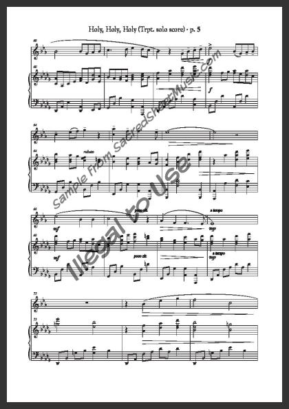 Trumpet solo with piano accompaniment. A beautiful, flowing arrangement of this older hymn praising our holy and merciful ‘Lord God Almighty!’ Moderate level of difficulty.