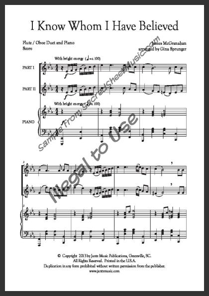 Mixed woodwind duet for Flute and Oboe with piano accompaniment. An exciting new arrangement expressing our assurance in the finished work of Christ. Moderately Advanced level of difficulty.