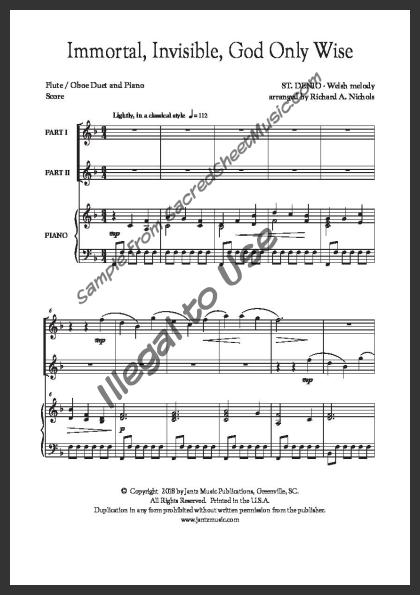 Mixed woodwind duet for Flute and Oboe with piano accompaniment. A fresh setting in a light classical style of this great hymn of praise and worship extoling the attributes of our Almighty God. Moderately Advanced level of difficulty.
