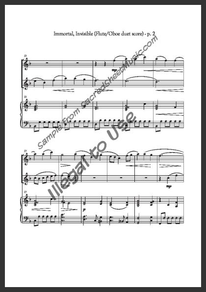 Includes the full score with piano accompaniment and separate duet parts for Flute I and Oboe II.