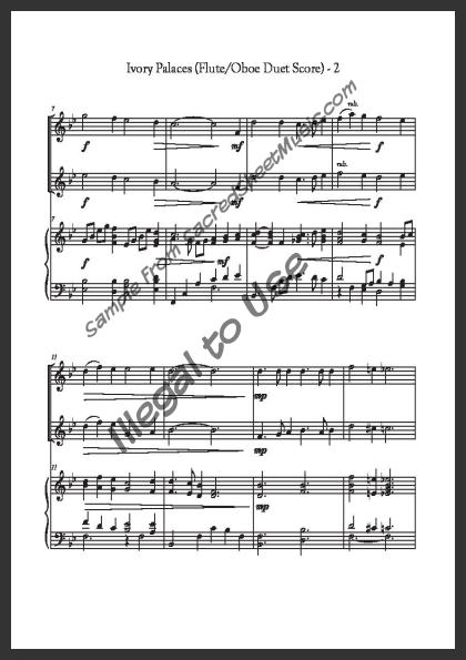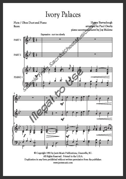 Mixed woodwind duet for Flute and Oboe with piano accompaniment. A beautiful, simple arrangement of this older hymn about God’s love – ‘only His great eternal love made my Savior go.’ This setting combines ‘Ivory Palaces’ along with a chorus of ‘The Old Rugged Cross.’ Moderate level of difficulty.