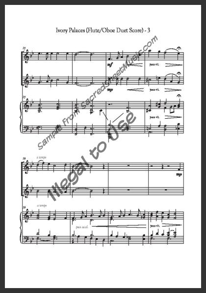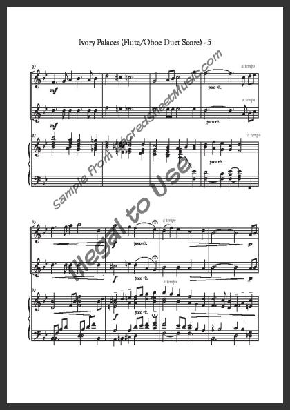 Includes the full score with piano accompaniment and separate duet parts for Flute I and Oboe II.