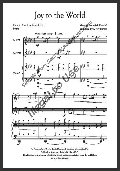 Mixed woodwind duet for Flute and Oboe with piano accompaniment. An energetic arrangement by renowned arranger Molly Ijames of this most popular Christmas song – ‘Joy to the World! The Lord is come.’ Moderate level of difficulty.