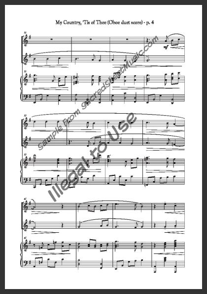 Oboe duet with piano accompaniment. A powerful, fresh setting of this popular American patriotic song – “America.”. Moderately level of difficulty.