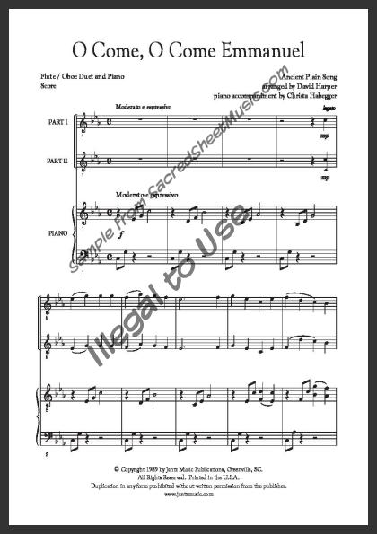 Includes the full score with piano accompaniment and separate duet parts for Flute I and Oboe II.