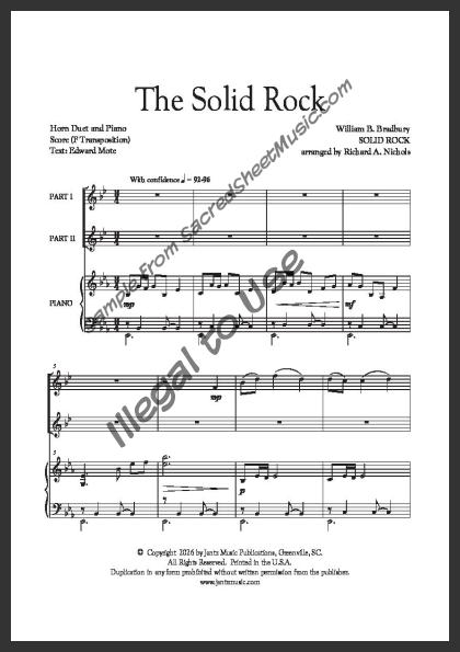 Horn duet with piano accompaniment. A bright, uplifting arrangement that reminds us our hope is built on Christ. Moderate level of difficulty.