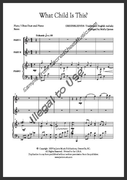 Mixed woodwind duet for Flute and Oboe with piano accompaniment. A beautiful, flowing setting of this popular Christmas favorite. Moderate level of difficulty.